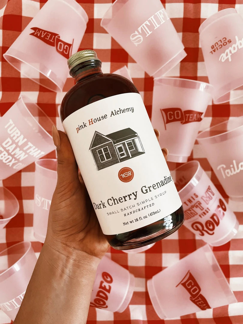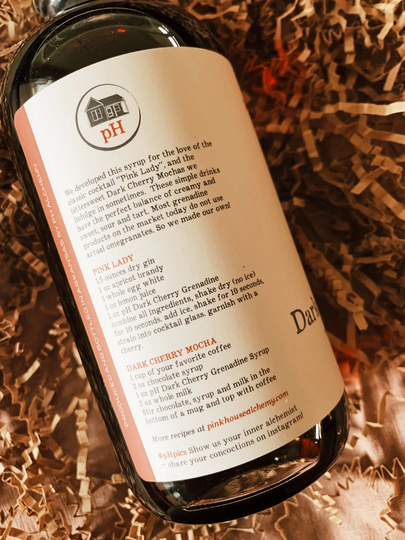 We developed this syrup for the love of the classic cocktail “Pink Lady,” and the bittersweet Dark Cherry Mochas we indulge in sometimes. These simple drinks have the perfect balance of creamy and sweet, sour and tart. Most grenadine products on the market today do not use actual pomegranates, so we made our own!