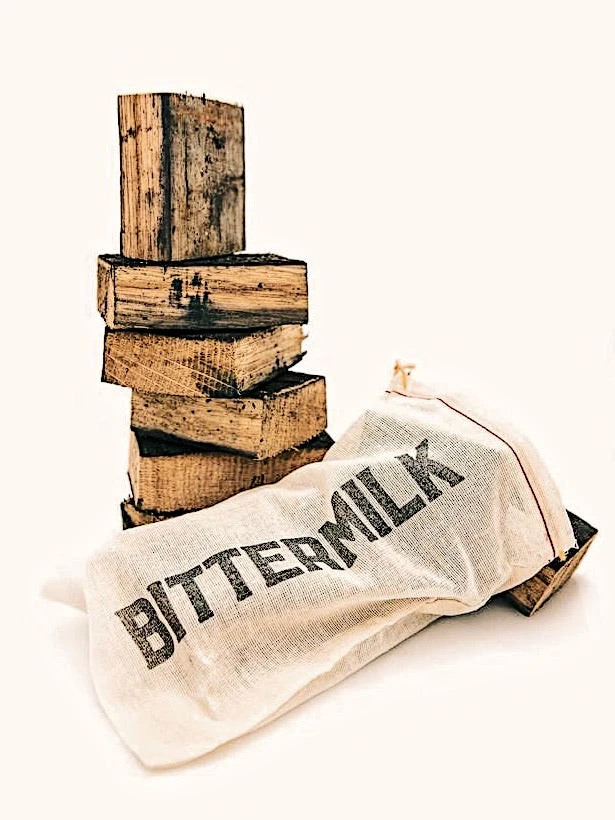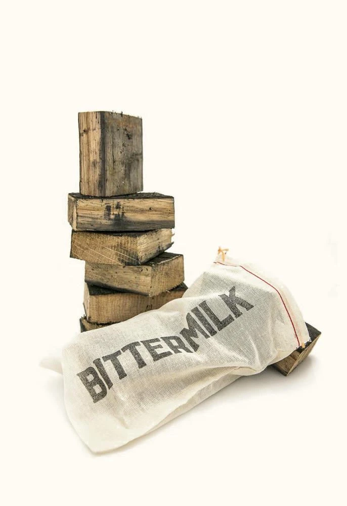 2 pounds of cut up Willett Distillery bourbon barrels in a Bittermilk cloth bag. Packed in an inner plastic zip-bag to maintain bourbon and old fashioned aromas.