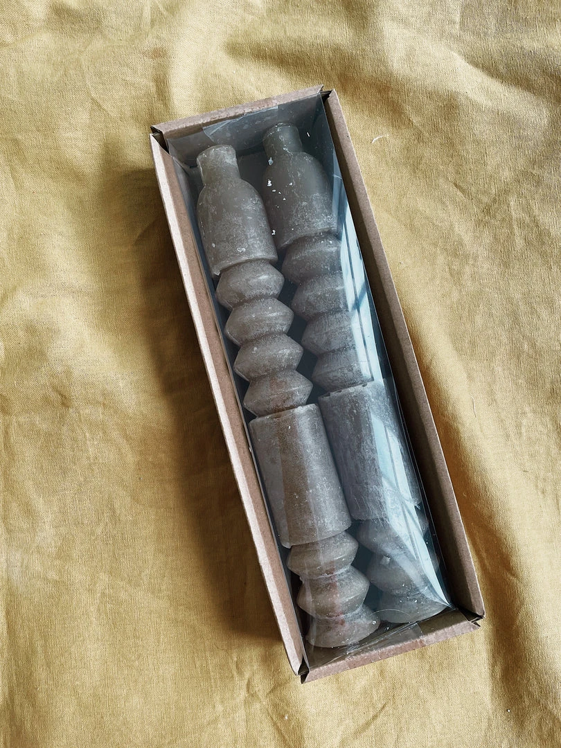 Would pair beautifully with a set of brass taper candle holders on your next dinner party tablescape! Comes in a set of two candles.