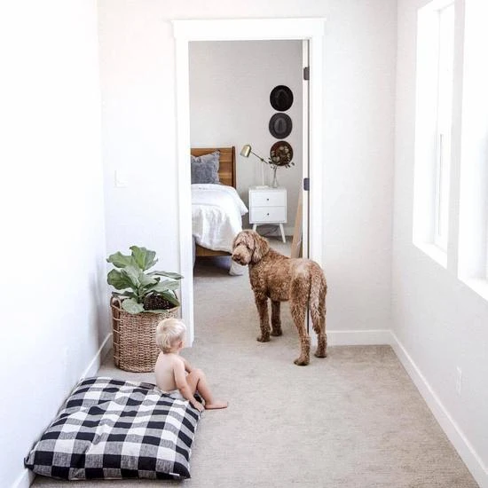 Our Buffalo Check dog bed features the classic plaid that everyone knows and loves, in alternating 3″ squares of black and light tan. The cover is made from heavyweight upholstery-grade cotton fabric that is beautiful, durable, and machine washable. 100 % Made in the USA.