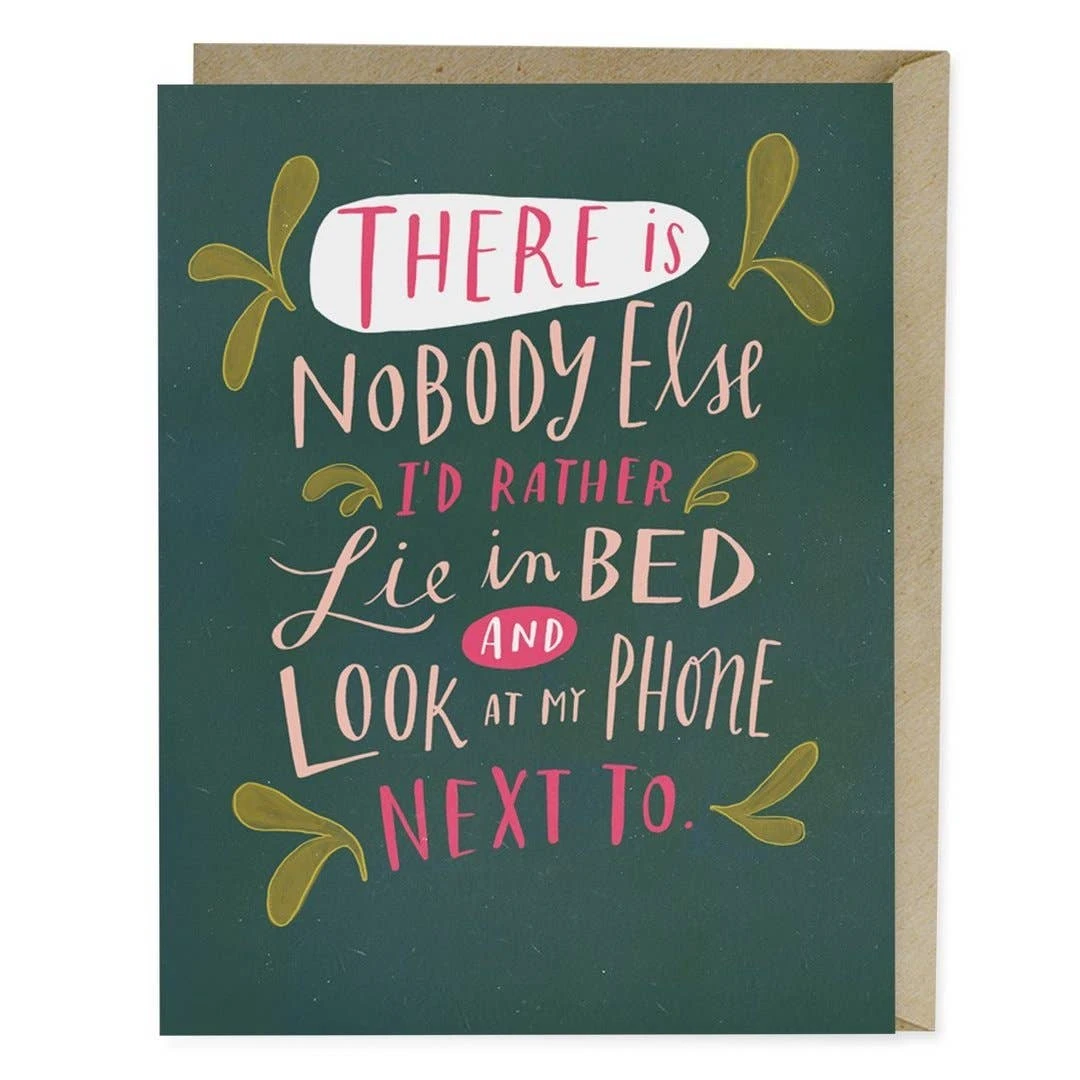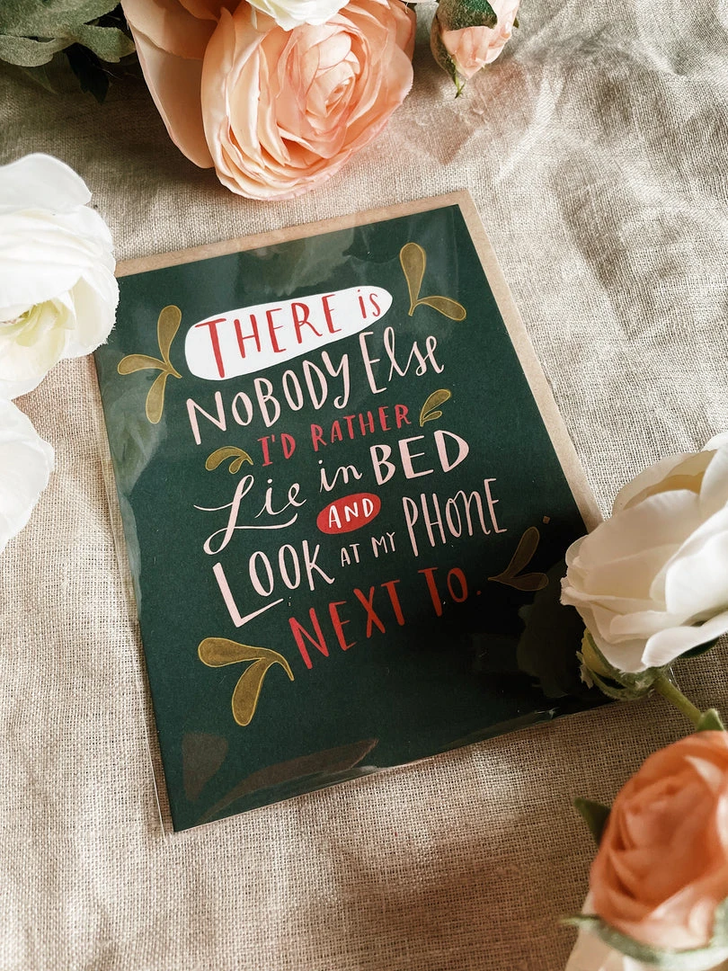 “There is nobody else I’d rather lie in bed and look at my phone next to.” This pretty much sums up my relationship. Maybe it applies to yours, too. So we’re all totally normal. Right?