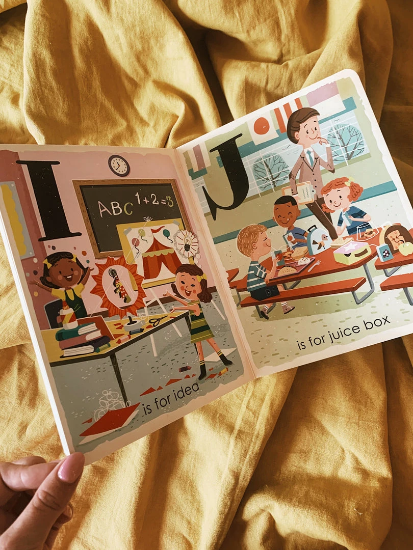 An ABC primer that introduces your brilliant baby to what to expect when they’re ready to go to school.