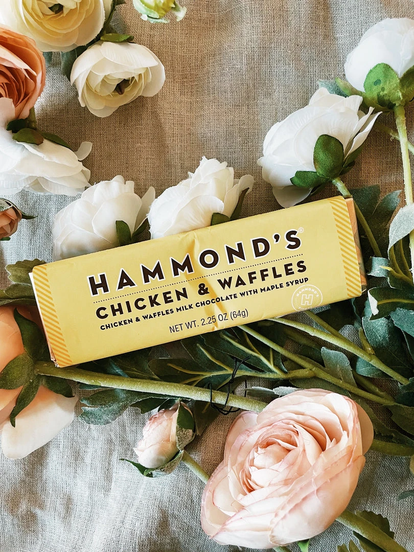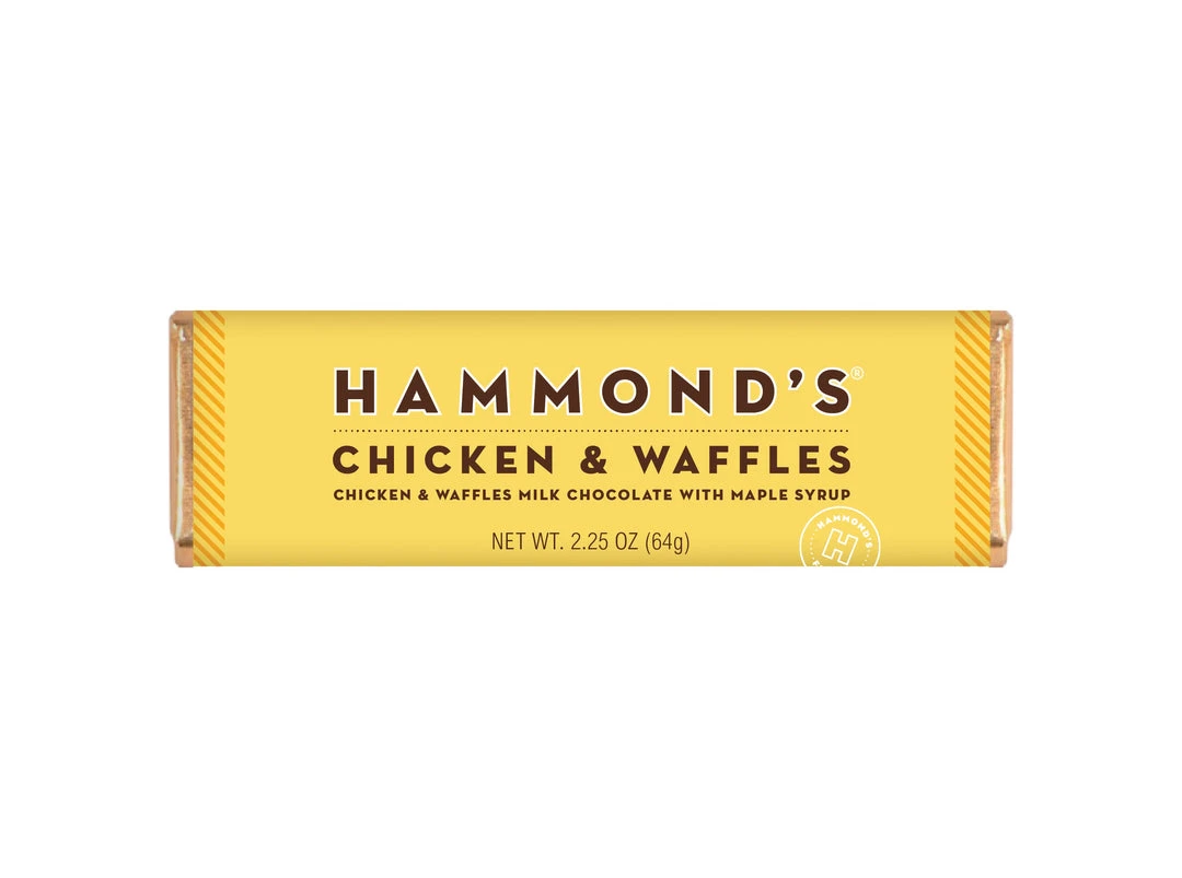 Chicken & Waffles milk chocolate w/ maple syrup.