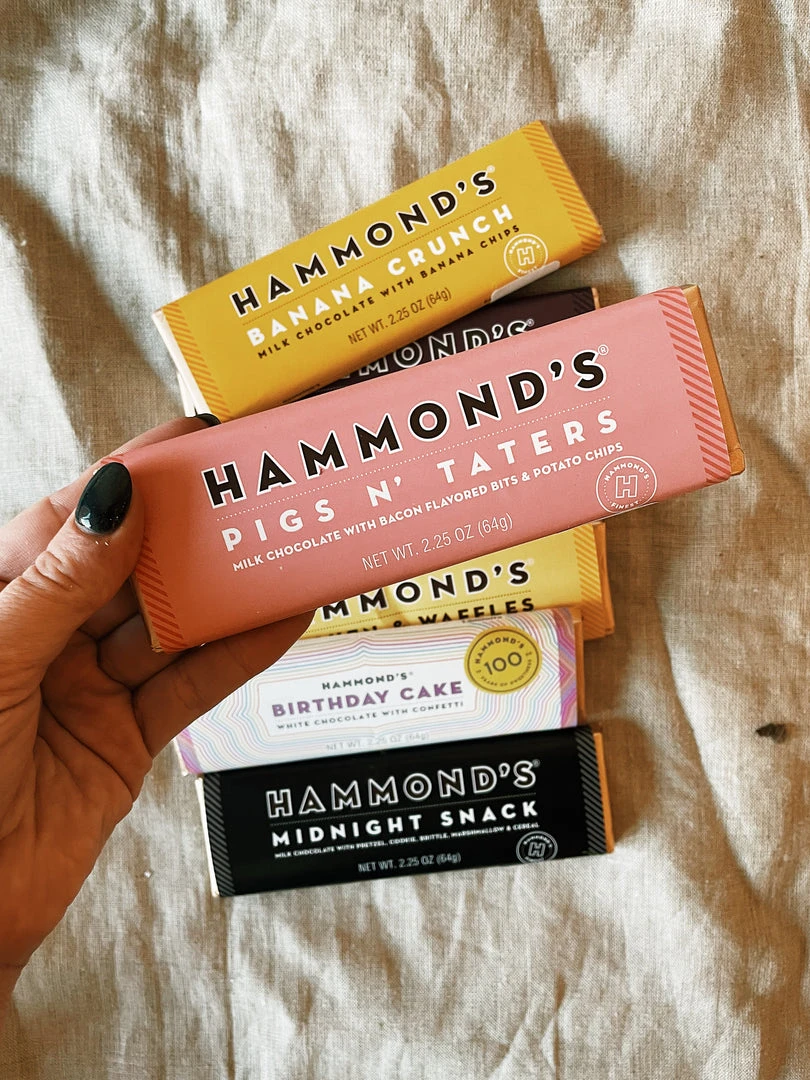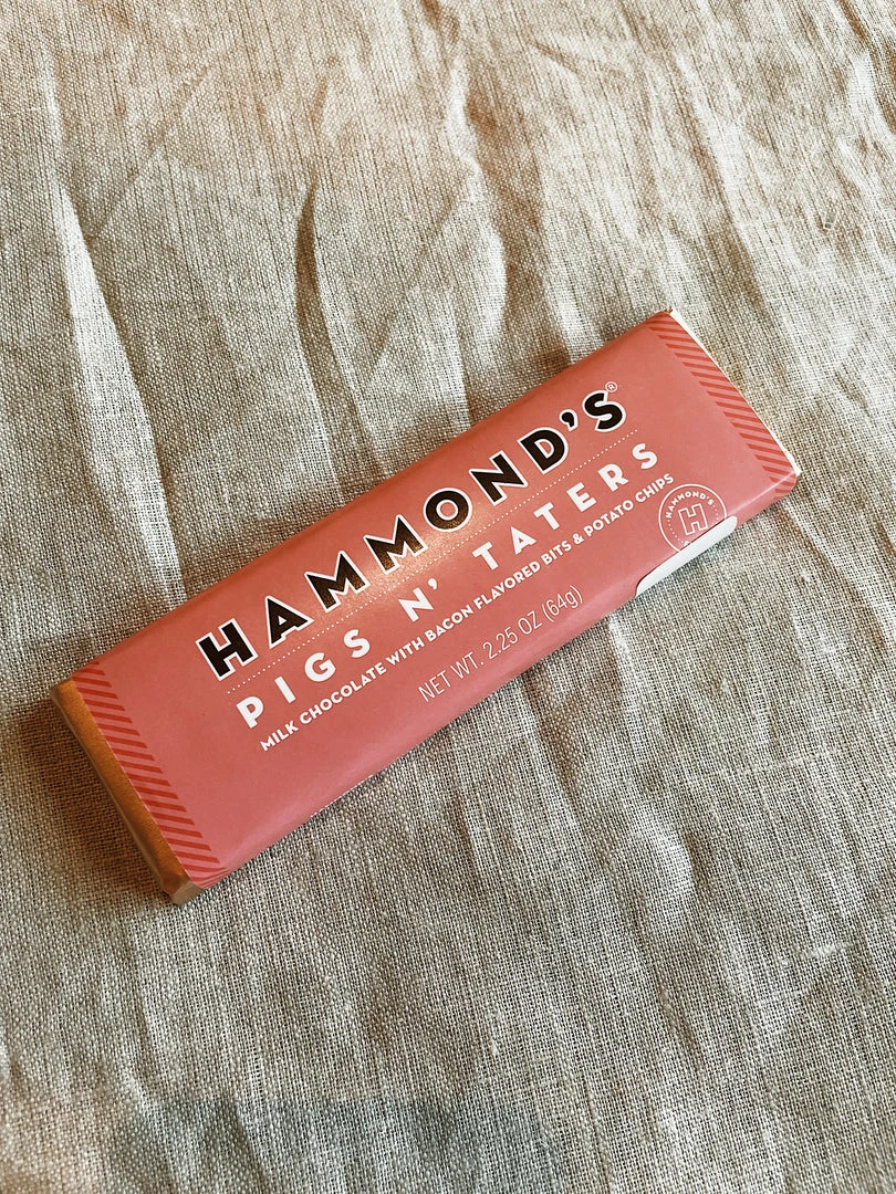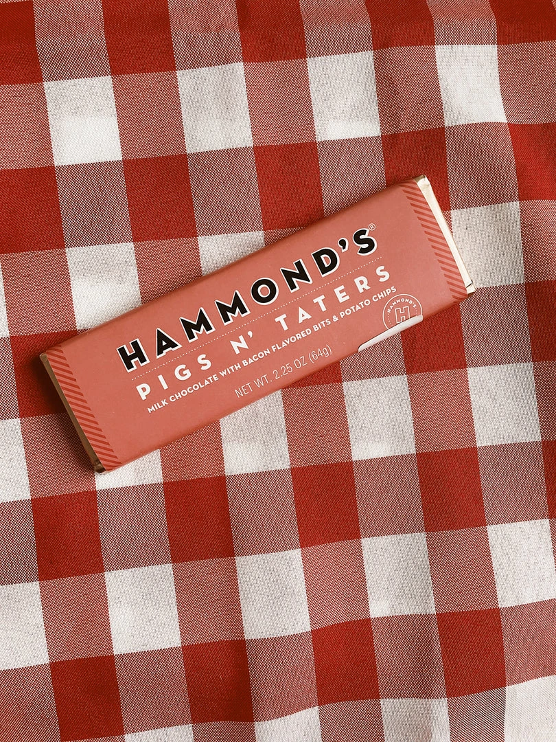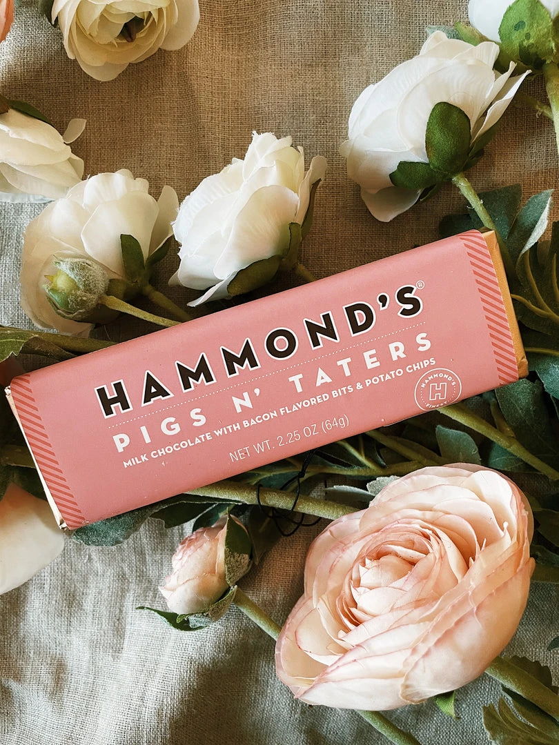 Deliciously sweet and salty! This yummy Pigs N’ Taters Chocolate Bar combines a delicious mix of bacon, potato chips and milk chocolate.