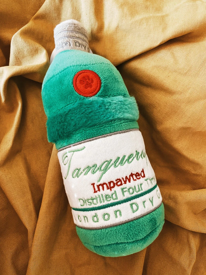 It’s always happy hour at Haute Diggity Dog! Tanqueruff gin is “Impawted” and is made from soft plush with a fun squeaker inside.