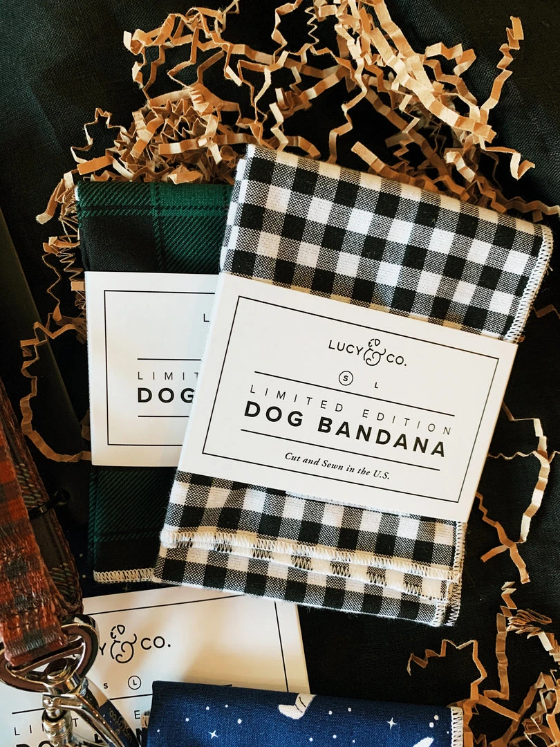 A simple bandana delivers instant style effortlessly. Tie one on to scout out your dog’s next adventure or roll it into a kerchief for some fashionable pizazz round town. Each pattern is hand selected and sewn in Minneapolis. Made in the U.S.A. Cotton blend. Machine washable. Line dry or tumble dry low.