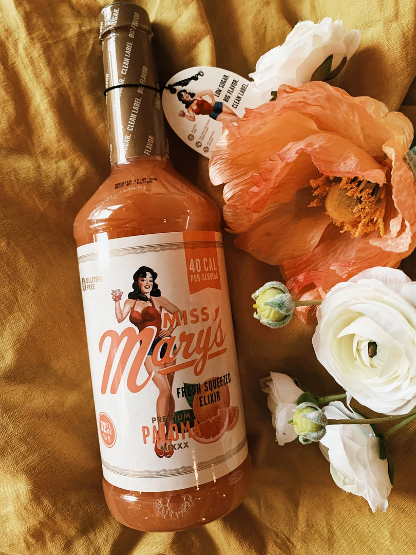Get excited about your new favorite cocktail with a fresh twist. Our Fresh Squeezed Paloma mix is handcrafted with premium ingredients including Fresh Grapefruit and Lime, Organic Blue Agave Syrup, and bright natural essential citrus oils. Our refreshing and clean Paloma Mix contains only 2g of sugar and with only 40 Calories per serving, it is perfect for any occasion and will leave you craving more. The Perfect Paloma: Combine 2 parts Miss Mary’s Fresh Squeezed Paloma Mix with 1 part premium tequila in a shaker with ice. Add a splash Club Soda for a boost of refreshment. Garnish with a fresh lime wedge. Paloma Press: Combine 1 part Miss Mary’s Fresh Squeezed Paloma mix with 1 part premium vodka and 1 part club soda. Garnish with a fresh lime wedge. Paloma Martini: Combine 1 part Miss Mary’s Premium Paloma Mix with 2 parts premium vodka. Add a splash of dry vermouth. Shake, pour, adore. Paloma Mimosa: Pour a splash Miss Mary’s Premium Paloma Mix into your favorite champagne.
