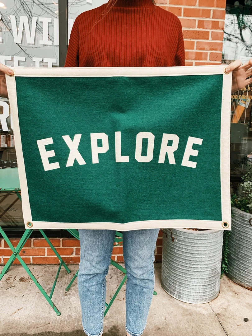 This custom Explore camp flag is perfect for explorers, campers, travelers, adventurers, lovers of the outdoors and sufferers of wanderlust.