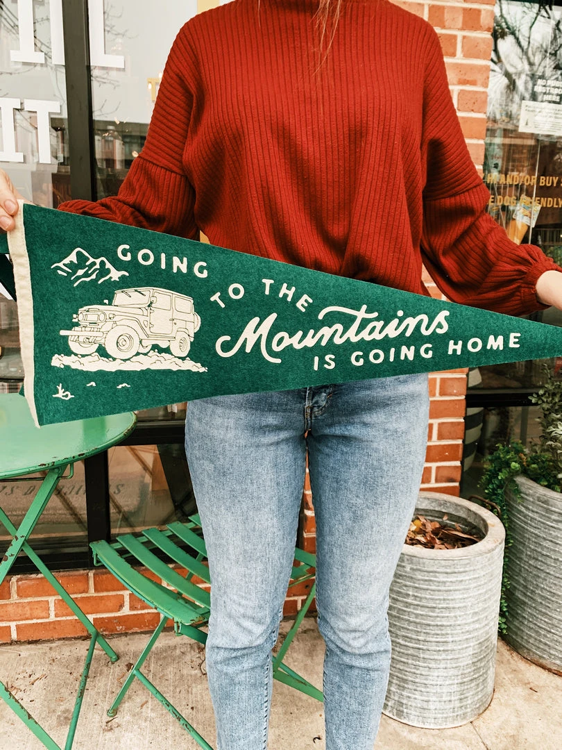 This custom Going to the Mountains is Going Home pennant comes from a quote by environmentalist, John Muir. Perfect for explorers and lovers of the outdoors.