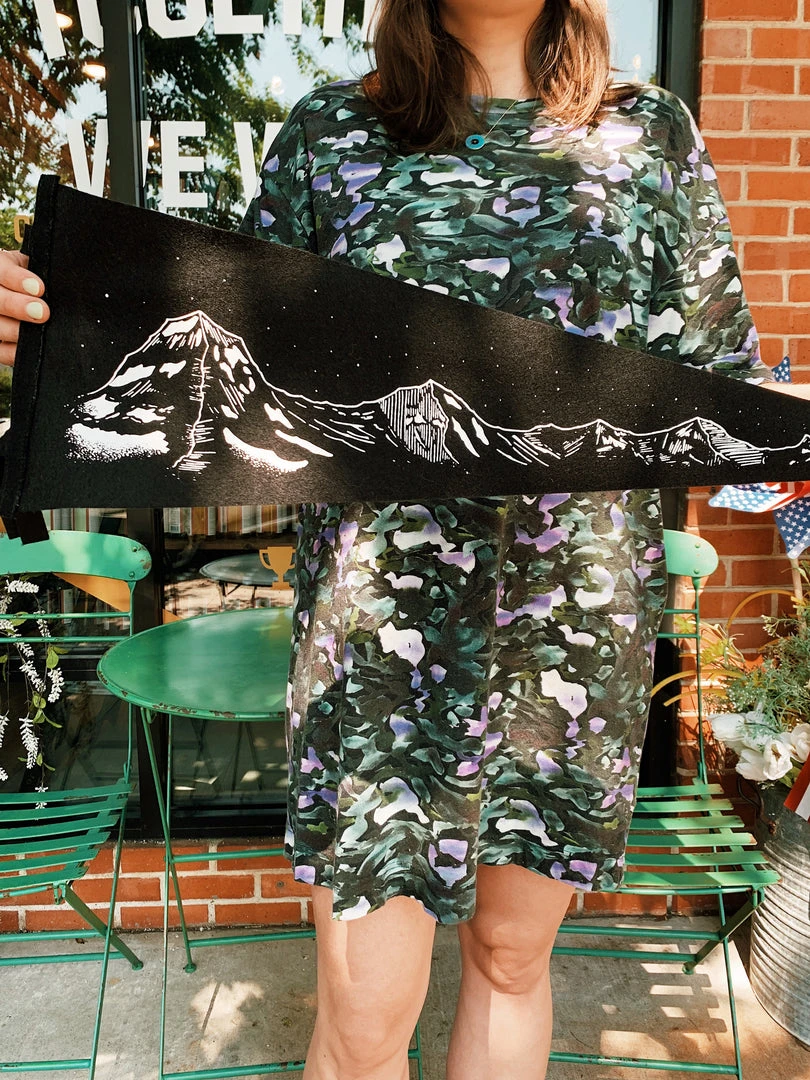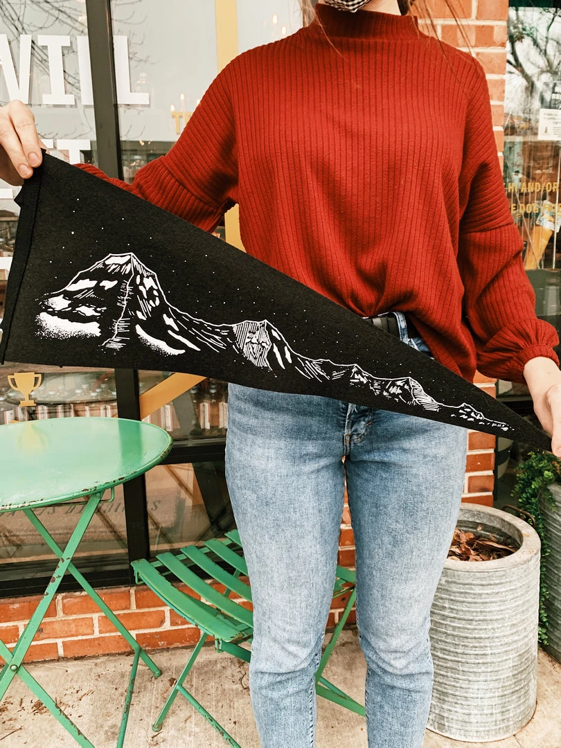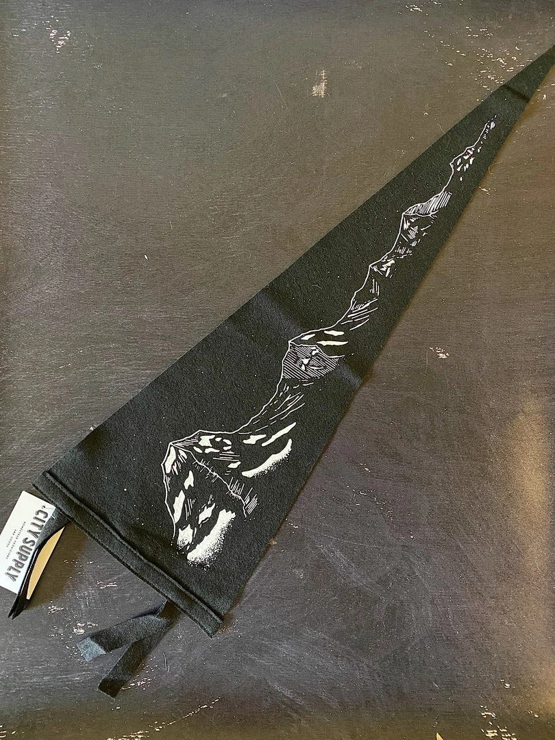 This custom Mountain Range pennant comes from English illustrator Mick Jennings. Perfect for those who love the outdoors, adventures, climbing and hiking.
