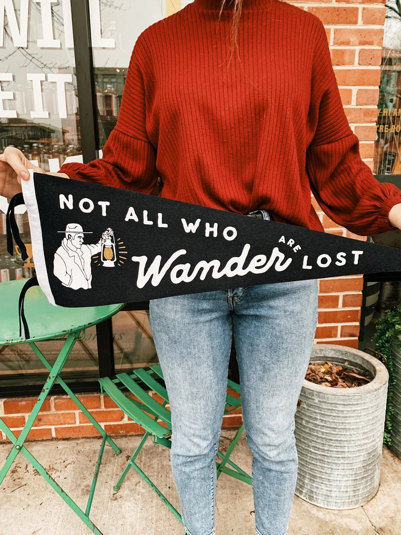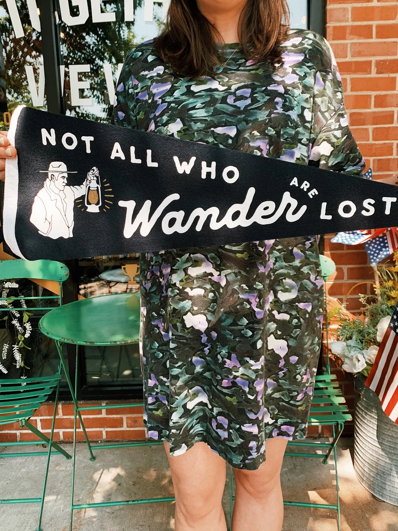 There’s always something new to discover. This custom Not All Who Wander are Lost pennant is a collaboration with Brandon Burk. Design by Jim Waws.