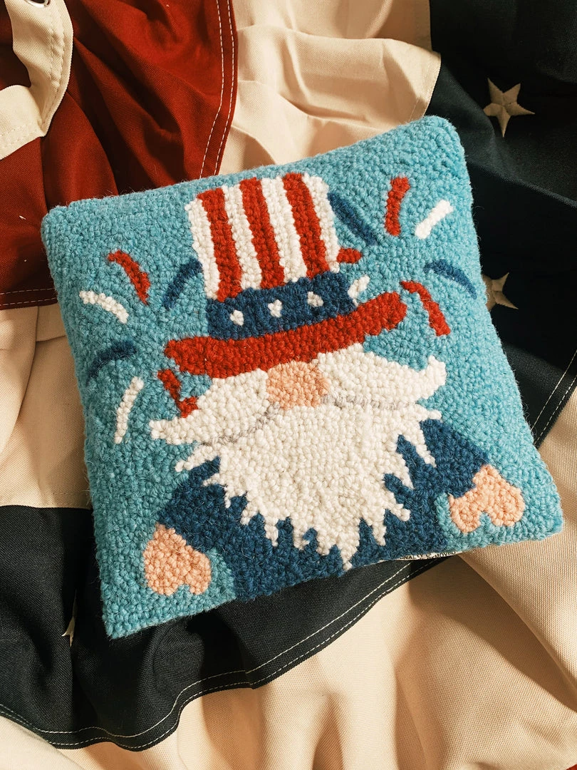 100% wool hooked throw pillow with 100% cotton velvet backing.
