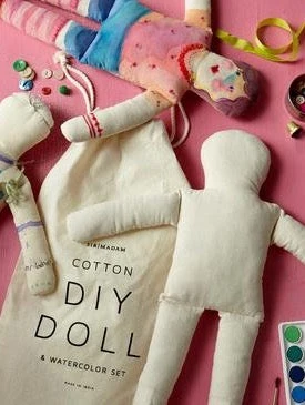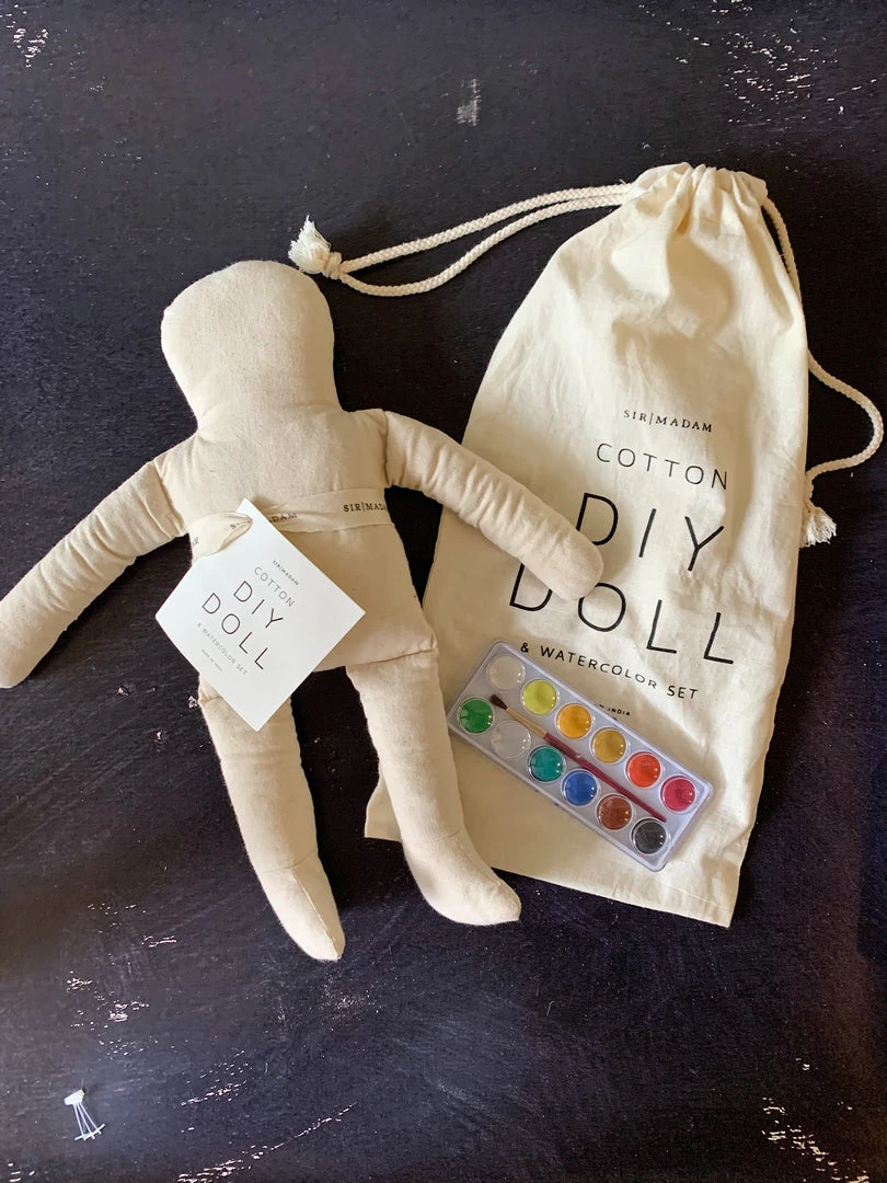 Bring your doll to life with the enclosed watercolor set, or use your own markers, fabric, glitter, yarn — whatever strikes your fancy.
