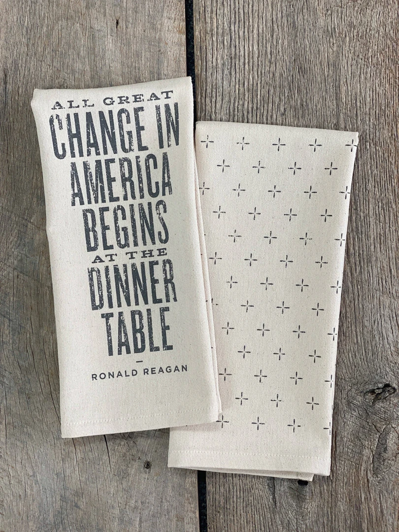 All Great Change in America Begins at the Dinner Table – Ronald Reagan Quote – Kitchen Towel