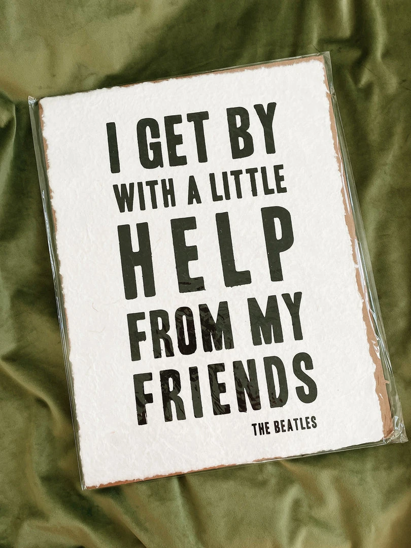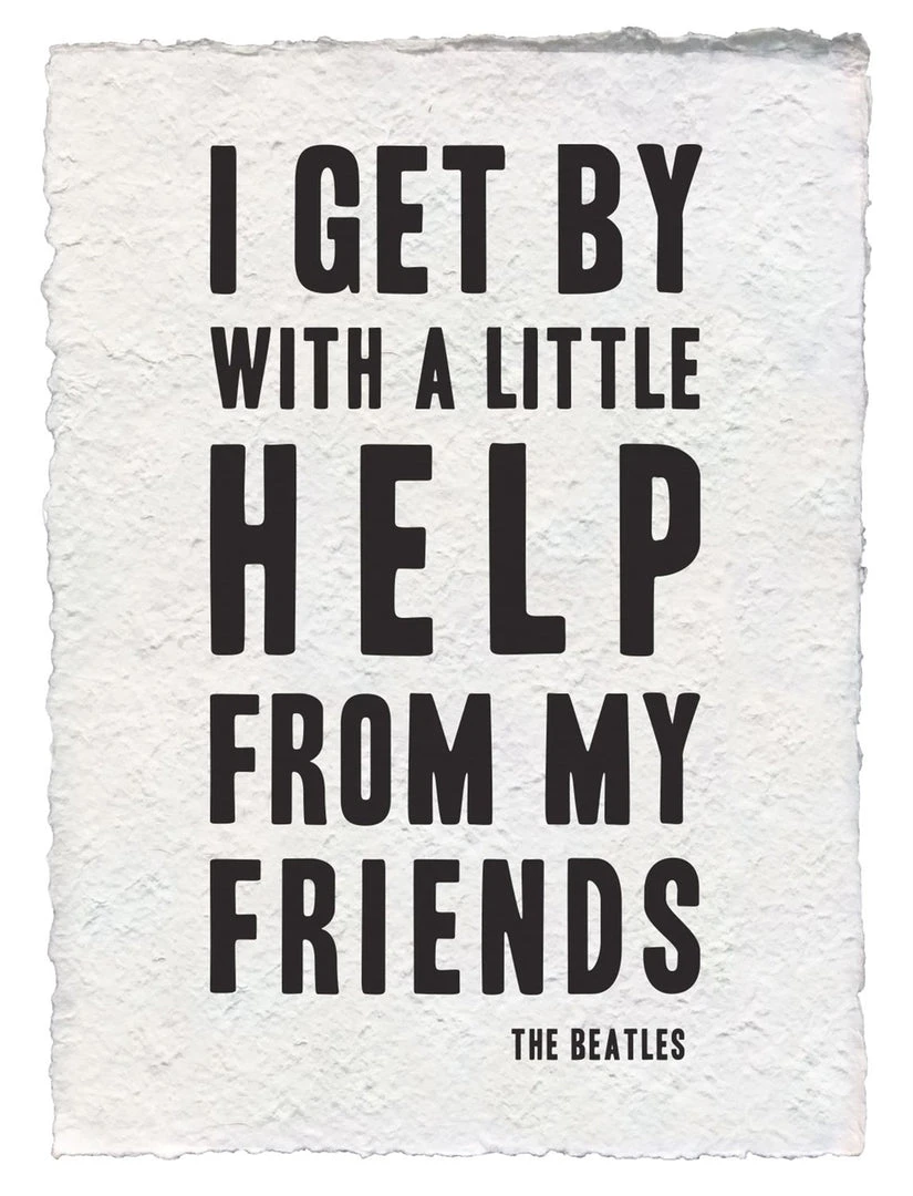 Quote reads, “I get by with a little help from my friends – The Beatles”