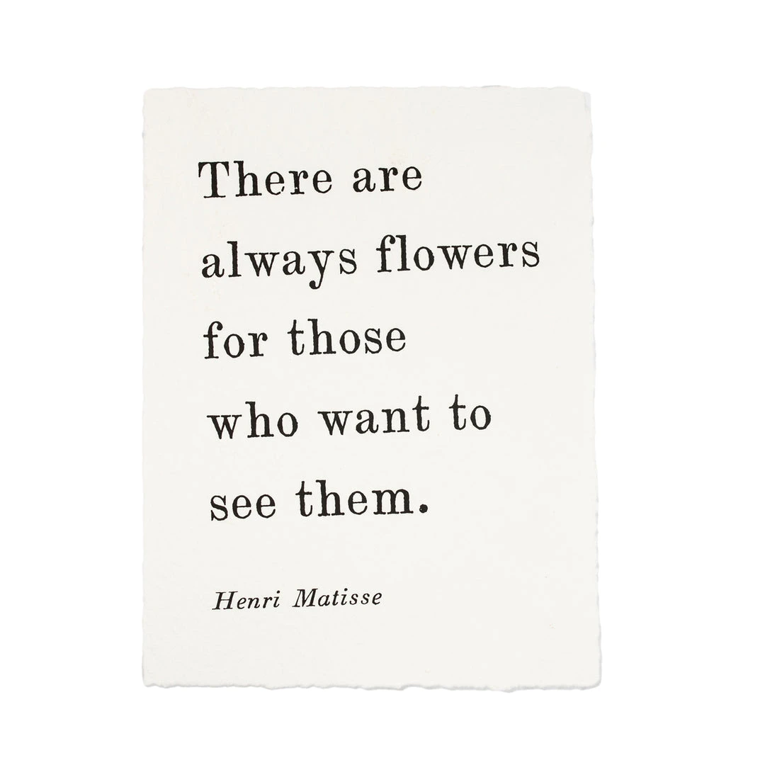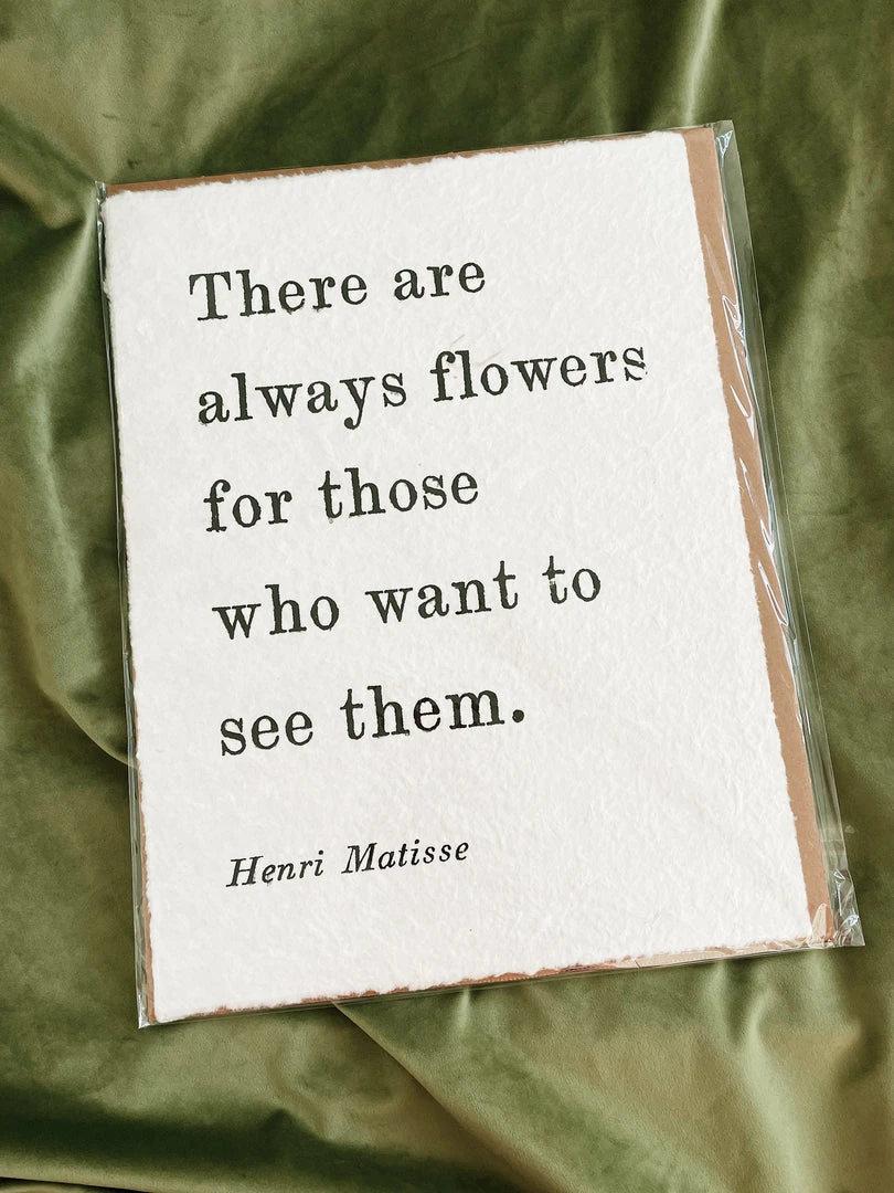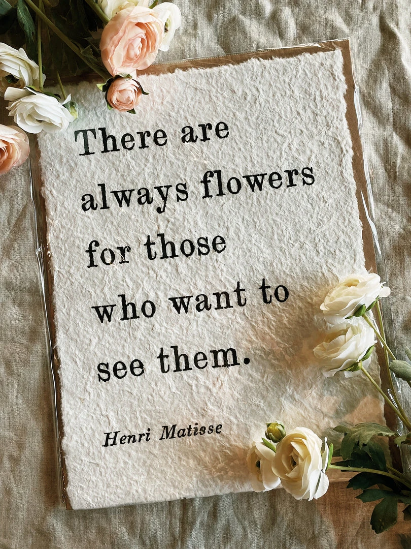 Quote reads, “There are always flowers for those who want to see them – Henri Matisse”