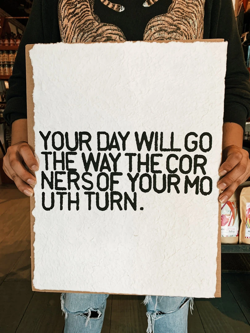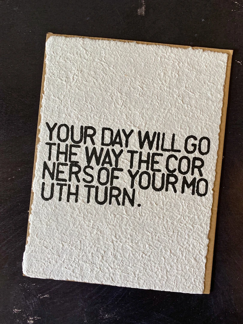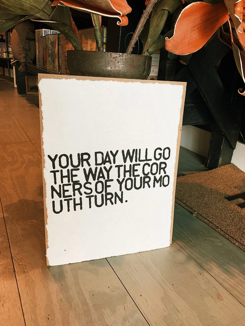 Quote reads, “Your day will go the way the corners of your mouth turn.”Â