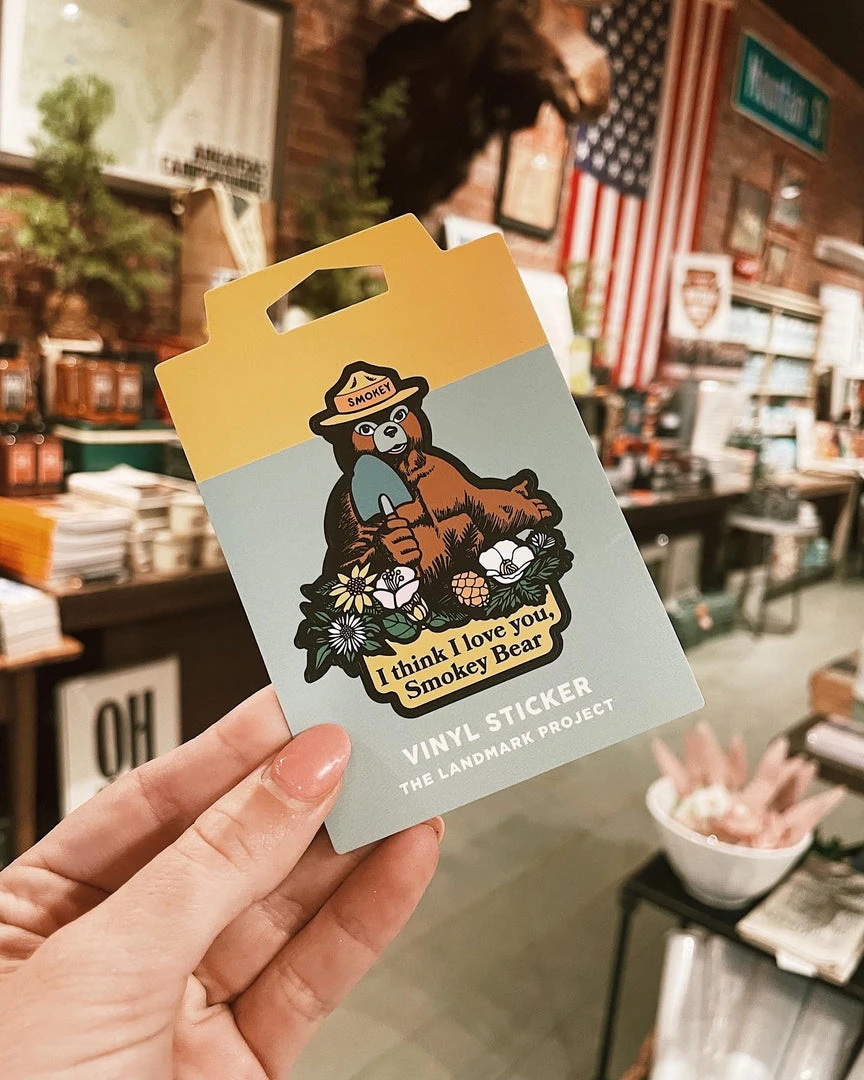 Love Smokey Bear? So do we! This vintage artwork looks great on water bottles, car windows, coolers, or wherever else they may be applied. Each sticker is screen printed on weatherproof vinyl — durable enough to stand up to the elements while still looking good for years. When peeled away from the backing, the sticker measures 2.7″ tall.