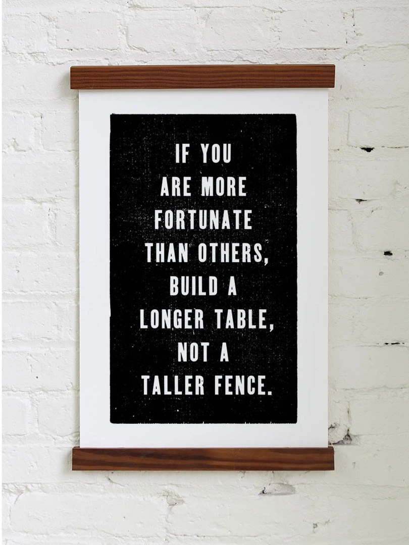 If you are more fortunate than others, build a longer table, not a taller fence.