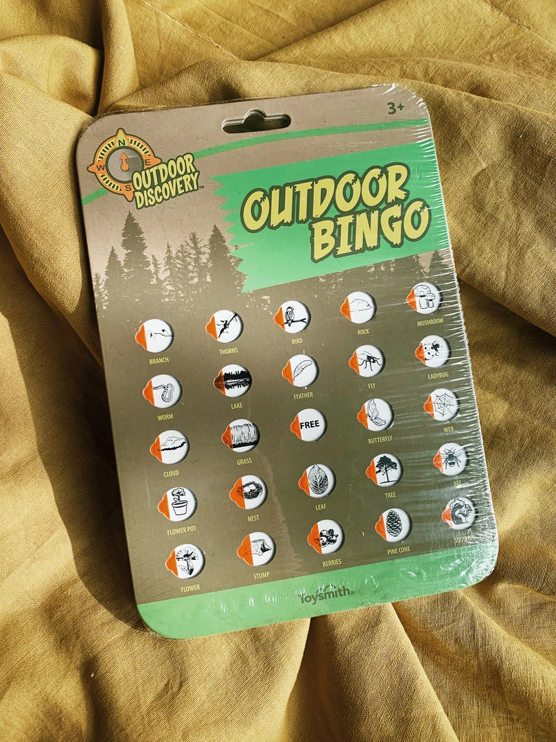 Set of two bingo cards with 24 unique items including a “free” one in the middle. Slide the windows as you find them for no mess fun. First with five in a row wins!