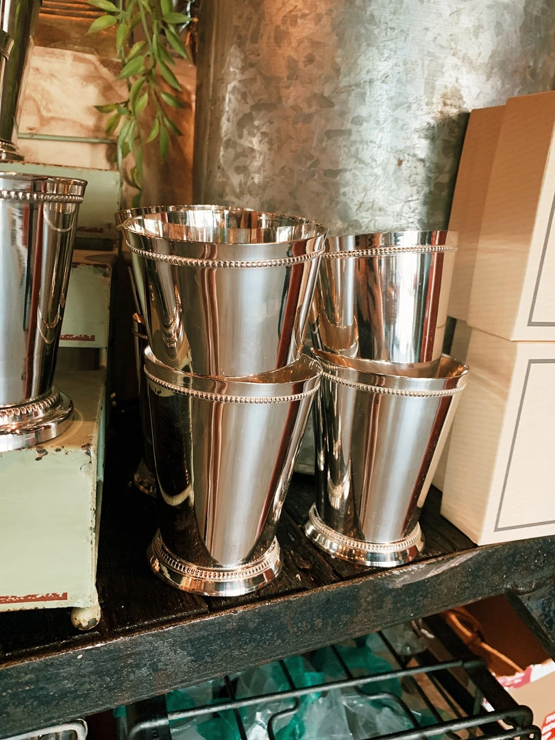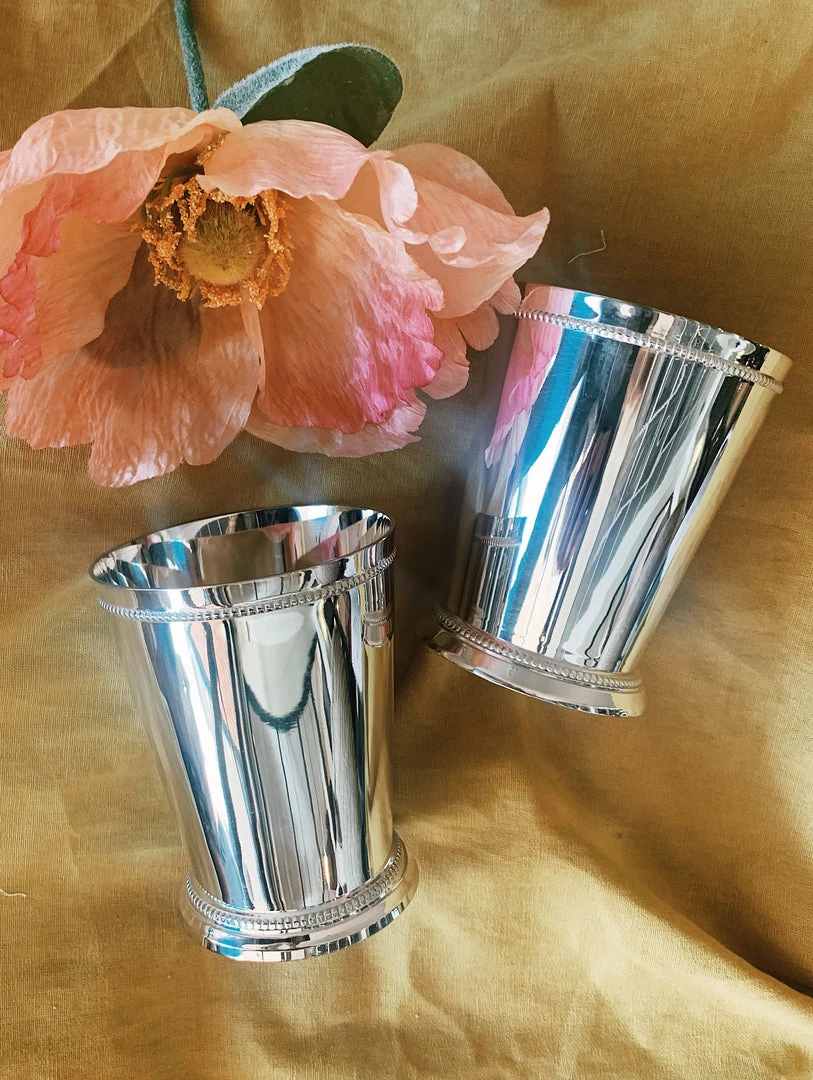 The Mint Julep is a bourbon cocktail best known for being the signature drink of the Kentucky Derby. Mint julep cups are specially designed to hold the mixed alcoholic drink, which typically consists of bourbon, sugar, water, crushed ice, and mint.