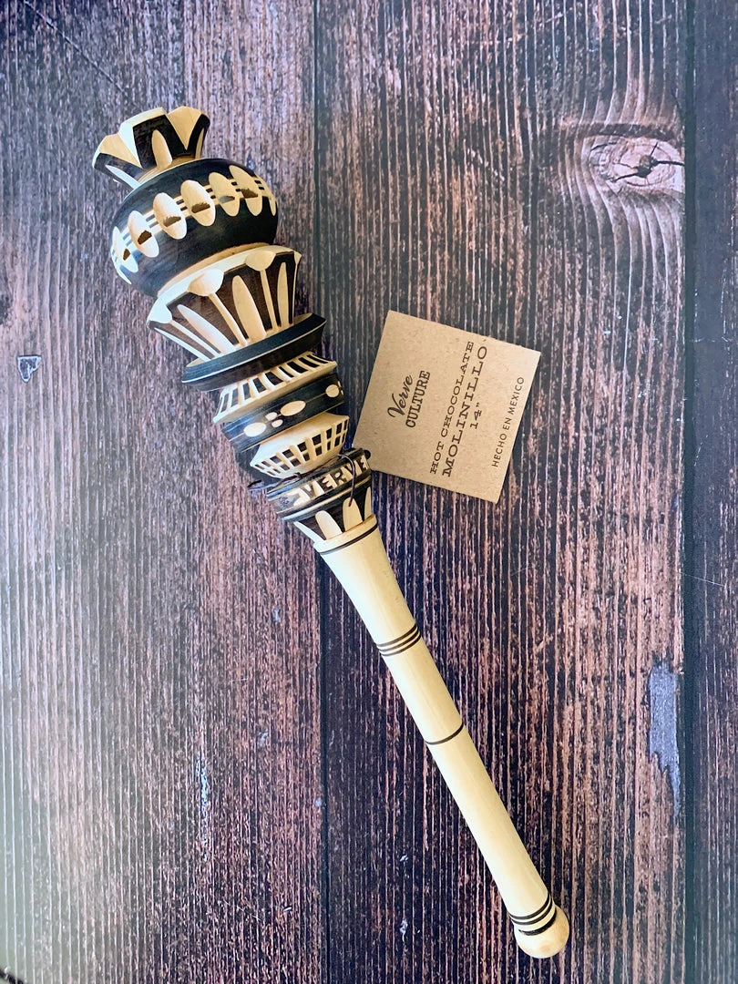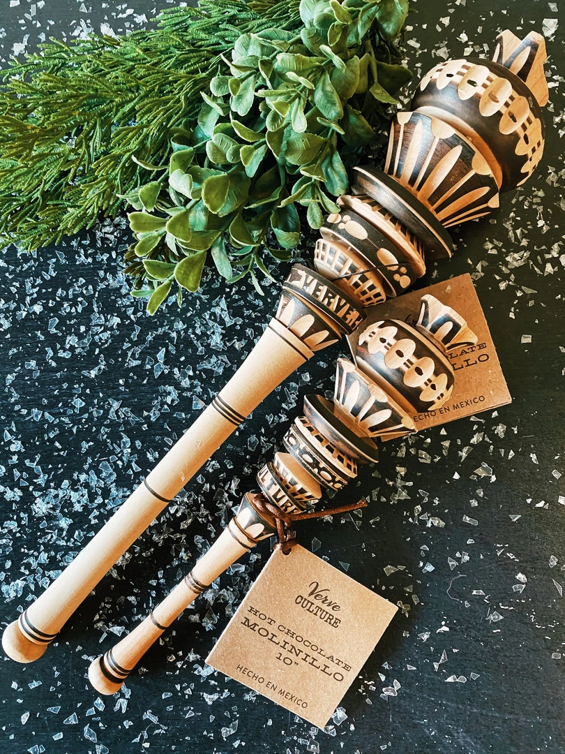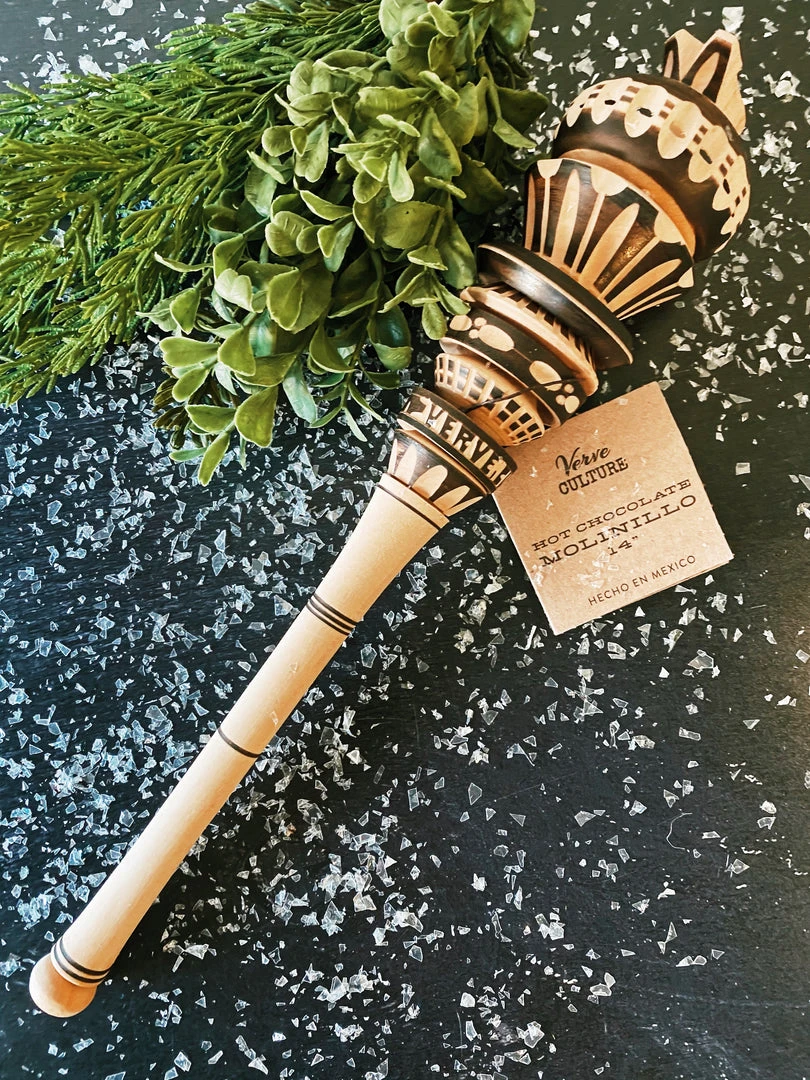 The molinillo is a Mexican wooden whisk that’s used to mix up and add froth to a batch of Mexican hot chocolate. Simply roll the shaft between your palms to churn, mix, and foam the chocolate. The molinillo is also great for muddling fruits and herbs in homemade cocktails! It’s a pleasure to use, or gift – and it’s a guaranteed attention-grabber.