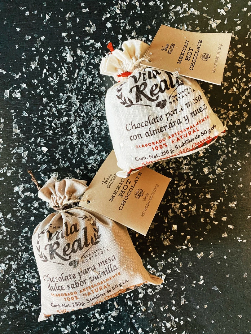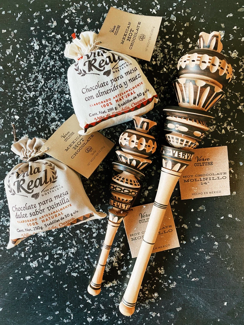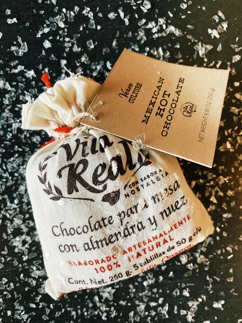 Villa Real chocolate from Oaxaca is made with simple ingredients of cocoa butter, sugar, almond, and other nuts and spices, resulting in the most delicious cup of Mexican Hot Chocolate you’ve ever tasted. Mix with warm milk and froth together with our handcrafted traditional molinillo. (Jug and Molinillo not included).