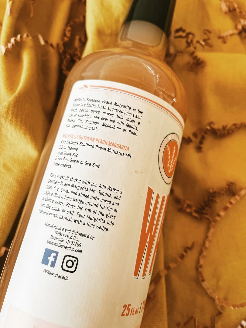 Walker’s Southern Peach Margarita is the South in a bottle. Fresh squeezed juices and fresh peach puree makes this mixer a ray of sunshine. Mix over ice with Tequila, Vodka, Gin, Bourbon, Moonshine or Rum, stir…garnish…repeat.Â