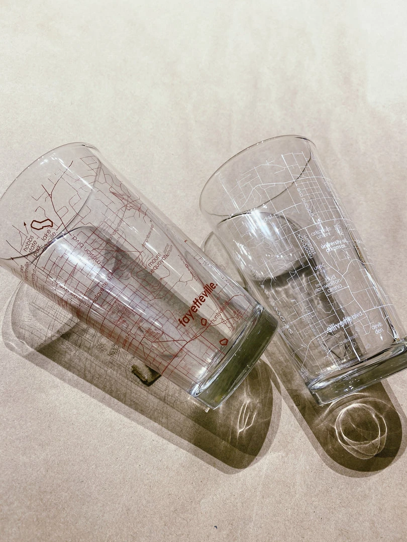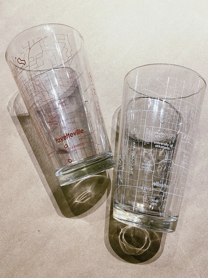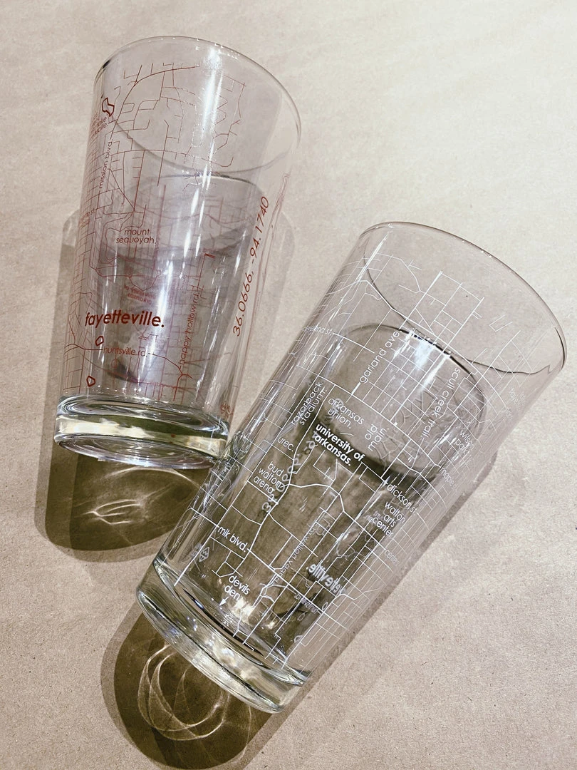 Raise a glass to your alma mater with our College Town Map Pint Glasses, featuring a map of Fayetteville AR, home of University of Arkansas. Each pint glasses features a beautifully detailed map showcasing the streets, neighborhoods, and coordinates of your favorite U.S. college town printed in the vibrant colors of the home team. Each set of 2 comes boxed in our eco-friendly, retail-ready packaging.